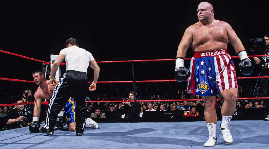Butterbean, real name Eric Scott Esch, came up on the ‘Toughman’ boxing circuit, televised on FX, with the finals appearing on FOX. The gimmick was that ‘Toughman’ would go city to city, signing up the ‘toughest dudes’ in the area. Similar to the structure of Golden Gloves, the ‘champions’ then enter a tournament consisting of all the other regional winners.